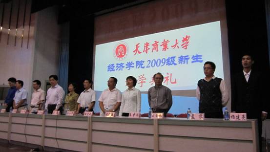 9 月 18 日上午,经济学院在学术交流中心举行了 2009 级新生开学典礼,经济学院党总支白玲书记、刘小军院长、张淑敏副书记、张宏武副院长以及各系主任出席开学典礼, 经济学院 2004 届毕业生,现为 百事物流科技有限公司天津分公司业务部经理孟黎以及 现任渤海银行河西支行行长王岩岩 应邀回母校参加了开学典礼, 开学典礼由经济学院副院长巫建国教授主持,全体新生班主任与经济学院 530 余名新同学参加了典礼。