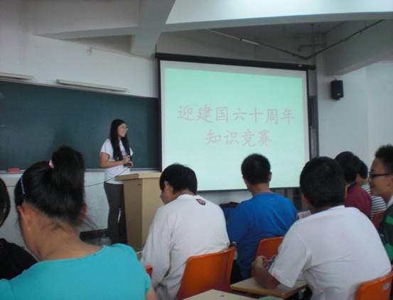 为了迎接伟大祖国的 60 年华诞,让同学们了解祖国的光辉历史,增长同学们的爱国知识,法学院于 9 月 25 日下午,在教学楼 3-510 室举办了主题为“我为祖国庆华诞”的爱国知识竞赛。 09 级各班积极参加此次活动,每班选定四名同学组成一支代表队参加竞赛。