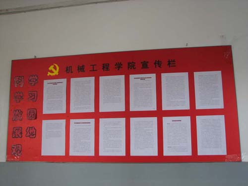 为深入学习贯彻科学发展观,机械工程学院党总支在办公楼内建立了科学发展观学习园地,摘登与学习有关的内容,帮助师生找准学习重点,理清学习思路。