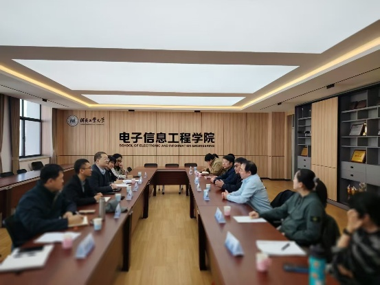 河北工业大学电子信息工程学院党委书记赵其波、院长王雨雷、副院长周亚同、通信工程系主任系主任郭志涛、副主任卢嘉以及骨干教师武睿等人参加调研交流。两院及两专业双方围绕学科专业及师资队伍建设、本科生及研究生培养方案修订、课程体系与核心课程设置、教学质量管控、学生实践能力与就业竞争力提升、工程教育认证等多个议题展开深入讨论。