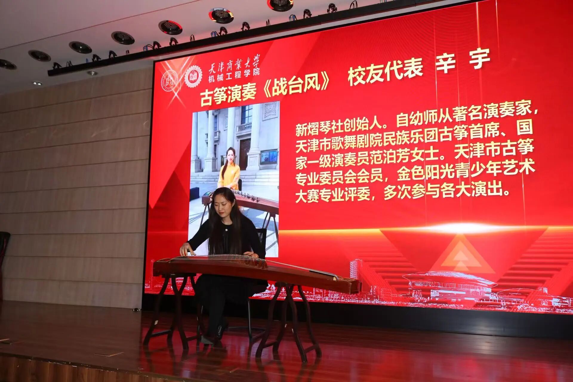 幼儿园师生为在场师生献上精彩节目:独舞舞姿优美,韵味悠长;集体舞蹈整齐划一,充满童真活力;诵舞腰鼓铿锵有力,兼具观赏性与感染力,将活动氛围推向高潮。活动特别邀请学院2014届能源与动力工程专业校友辛宇带来古筝演奏,旋律婉转悠扬,让现场观众沉浸其中。活动最后,全场师生齐声合唱,通过温馨的歌声传递对新一年的美好期望。