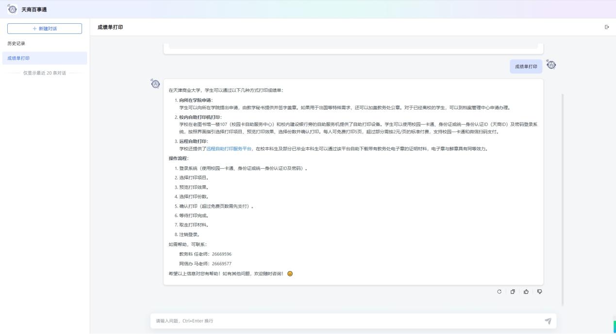 为给师生提供更加精准的服务,请师生积极使用“天商百事通”智能体应用进行提问,遇到回答不出来或者答案不准确遗漏的信息,请通过链接https://f.tjcu.edu.cn/app/2461082a-299c-4b00-aec4-22eb8ca42869/newrecord/67e6b864ad5e1c68d7c2e082/67e6b864ad5e1c68d7c2e086进行反馈,学校将及时做好知识库的维护更新,给师生们提供更优质的服务。