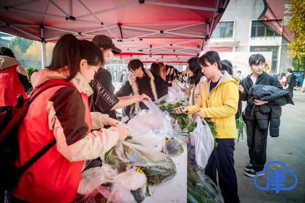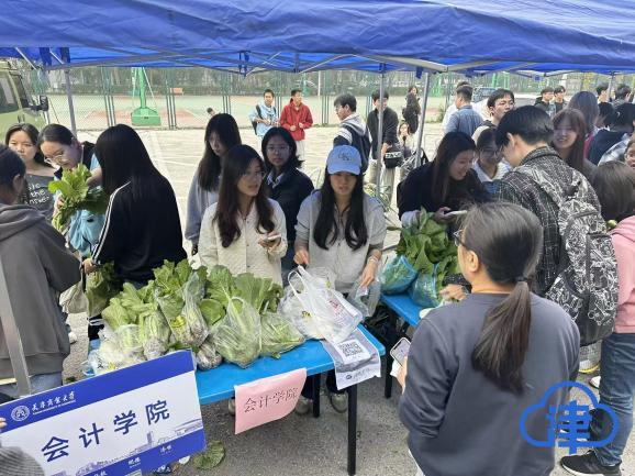 10月中旬,系列活动第二场如期而至。本阶段在延续集体劳动传统的基础上,着重强化各学院的组织自主性与团队协作效能。从“天商农场”里的协同采摘、高效称重,到“蔬菜集市”上的摊位布置、创意营销,各个环节均由学生主导完成。活动提升了学生经费管理、成本核算等实务能力,让学生在完整的生产链条中理解劳动与价值创造的关系。