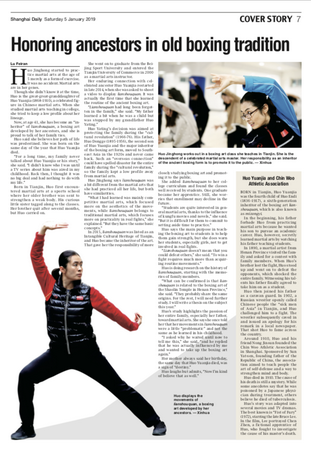1月5日,《上海日报》7版以“Honoring ancestors in old boxing tradition”为题对PP电子体育教学部霍静虹老师的工作生活进行了专题报道。上海日报app进行了转载。