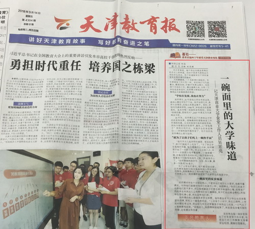 9月14日,《天津教育报》以《一碗面里的大学味道》为题采用通讯形式报道了PP电子食堂工作人员吴宏亮的事迹。该通讯是基于《PP电子游戏网站报》504版学生的报道改编而成。