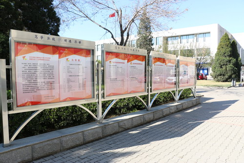 3月25日,“2016年度师德标兵”风采展在一号教学楼前宣传橱窗展出。