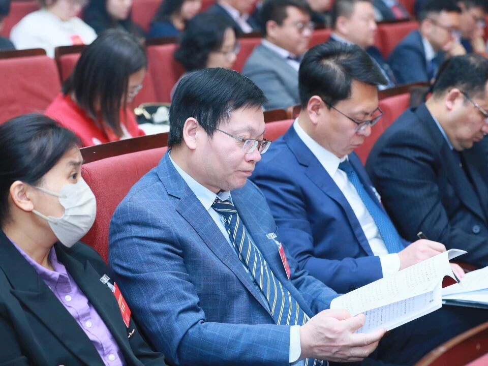 陈冠益作题为《锚定发展蓝图 凝聚奋进力量 奋力谱写特色鲜明高水平商业大学建设新篇章》的工作报告。报告回顾了二届一次“双代会”以来学校事业发展取得的显著成就,并对下一步工作进行了部署。报告强调,站在新的历史起点上,展望“十五五”,机遇与挑战并存。全校上下要深入学习贯彻党的二十届四中全会精神,按照学校第三次党代会提出的“高质量推进特色鲜明高水平商业大学建设”这一核心任务,坚持问题导向、目标导向、效果导向,强化战略思维,突出抓好“五大发展战略”,牢牢把握“认知为先、系统全面、唯实唯干、善作善成”的工作方针,着力抓好“九新行动计划”,全力推进学校高质量发展。