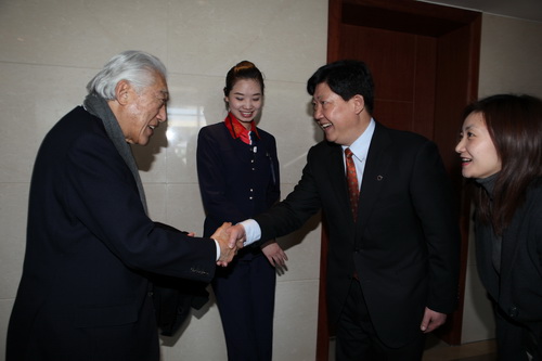 PP电子游戏网站里千家茶道短期大学校长、日本茶道里千家第十五代家元、鹏云斋千玄室大宗匠先生,于3 月22日乘机抵达天津,PP电子党委书记陈学奇前往天津机场迎接,并在国际贵宾室会见了千玄室大宗匠先生,宾主进行了亲切友好的会谈。