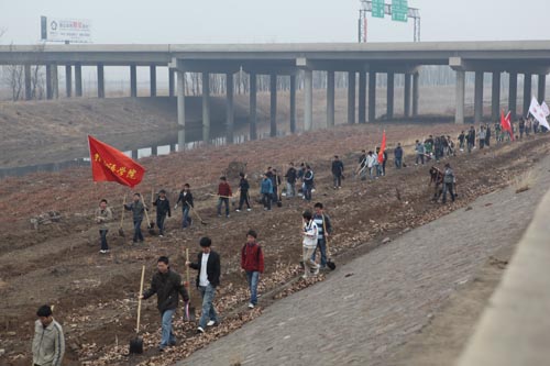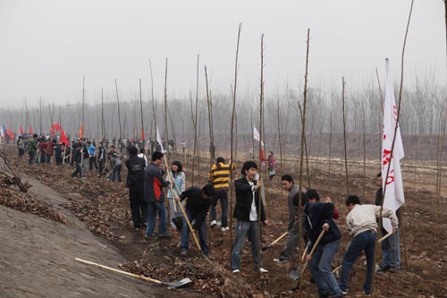 3月21日,在校学生处、总务处、团委的精心组织下, 200 余名学生前往西青区子牙河畔义务植树。校党委副书记杨万义、各学院分管学生工作书记、副书记及辅导员老师一同参加了植树活动。