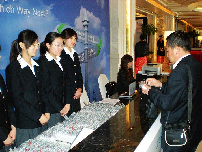 3 月 25 日 至 27 日,PP电子 TUC-FIU 合作学院十二名同学赴北京香格里拉饭店参加了 Horwath HTL (浩华管理顾问集团公司) 2009 年中国酒店开发与融资论坛并提供会议服务。本次会议为该论坛的第五届年会,由 Horwath HTL (浩华管理顾问集团公司)、 STR GLOBAL 以及中国旅游饭店业协会共同主办。 “ 中国酒店开发与融资论坛 ” 作为中国酒店业论坛的先驱,致力于探讨和洞察中国酒店业发展的最新动态和趋势。会议吸引了来自世界各地的几百位与会嘉宾,包括业主、开发商、酒店管理公司总部人员、业界专业人士、投资银行和金融机构、以及新闻媒体等。 会议期间, TUC-FIU 合作学院的同学们分别参与了前期文件准备、前台登记咨询服务、会议进程支持、问询台服务、嘉宾迎送礼仪等活动。同学们认真的服务态度和良好的专业素质推动了本次会议的顺利进行,受到了主办方和与会嘉宾的高度赞扬。通过本次会议服务,同学们对酒店行业的现状和未来趋势有了更深一步的了解,与酒店高级管理人员也取得了良好的沟通,为今后的酒店业专业课程的学习和实践打下了坚实基础。
