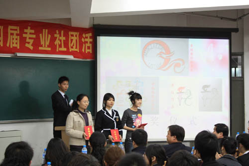 开幕式过程中用 VCR 的形式对上一年度专业社团所组织的活动和取得的成绩进行了回顾,展现了PP电子专业社团的风采。校团委书记王罡为社团联合会的会徽征集获奖同学颁奖。