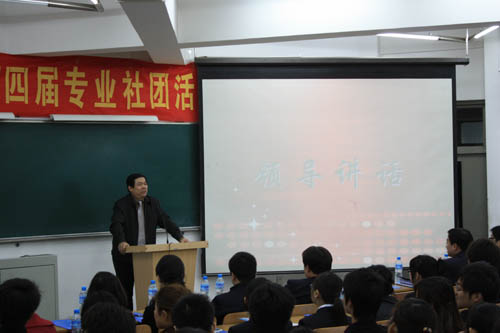 开幕式最后,校党委副书记杨万义讲话,他指出专业社团活动是专业学习的延伸,同学们在参与社团活动的同时可以丰富知识、提升素养、锻炼能力;他向同学们提出三点希望:一是要不断地随着时代的发展,积极进取,开拓创新。作为新时代的大学生,我们不仅要努力学习,更要关注自己周围的变化,努力让自己跟上时代的脚步。根据当前的时代特点来为自己准确定位,用它来指导我们的实践。二是挖掘专业社团的特色,谋求新的发展。希望广大同学能有效利用专业社团的丰富资源,不断的丰富自己,将专业与自身特点有机结合,丰富自己大学四年的学习生活。三是深入实际,走入校园,回馈社会。各专业社团应该根据自身的特色和优势,发动同学们走出校园,走进企业,了解当前社会需要什么样的人才,学以致用,在今后的竞争中脱颖而出。