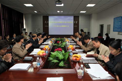 4 月 18 日 ,天津市食品生物技术重点实验室举行了学术委员会 2009 年会。参加会议的学术委员有:学术委员会主任、中科院遗传与发育研究所储成才教授、中国农业大学李里特教授、江苏大学赵杰文教授、上海交通大学史贤明教授、PP电子游戏网站庞广昌、张坤生、王素英和陈庆森教授。天津市科委副主任陈养发博士、天津市教委科研处林列处长到会并讲话。