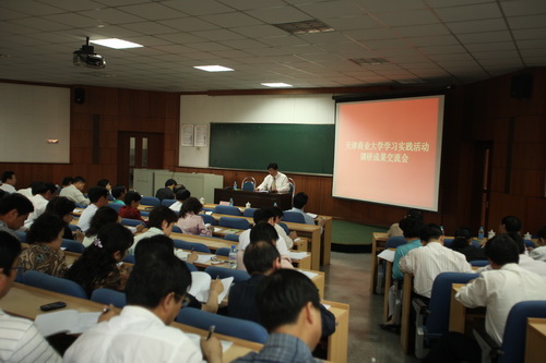 5 月 6 日 下午,学校在 3 号教学楼 101 会议室举行深入学习实践科学发展观活动调研成果交流会。五位调研课题负责人在会上介绍各自的调研成果。市委教卫系统第二指导检查组组长田荣信、吴春发两位同志莅临会议指导工作,校党委书记陈学奇在会上讲话,校领导杨万义、史习红、魏胤亭、马三津、杨明书出席,全校副处级以上干部参加,会议由校长刘书瀚主持。