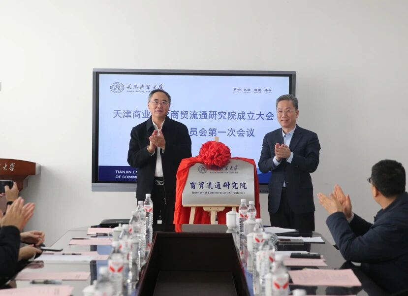 余江副校长和徐凤成会长共同为商贸流通研究院揭牌,并进行了商贸流通研究院共建研究中心揭牌和共建专业委员会成员聘任仪式。