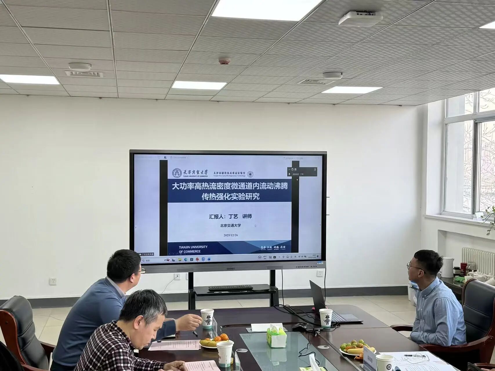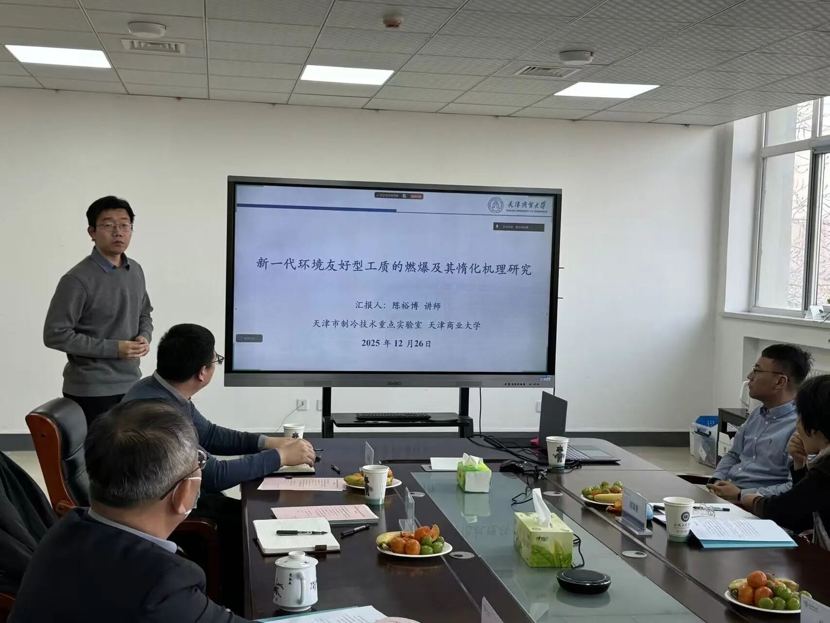 实验室主要负责同志重点从科学研究进展与创新成果、科研项目组织与实施、科研团队与师资队伍建设、研究生培养与人才引育,以及学术交流合作与实验室规范化运行管理等多个方面,对2025年度各项工作的推进成效进行了全面梳理和总结。实验室青年学术骨干董胜明副教授、陈裕博博士以及北京交通大学丁艺博士(2025年天津市制冷技术重点实验室开放基金获得者)分别就高温热泵优化设计方法研究、新一代环境友好型工质的燃爆及其惰化机理研究、大功率高热流密度微通道内流动沸腾传热强化实验研究进展进行了专题汇报。